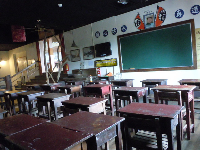 ↑用客解上的所,成校桌椅的形式,彷回到生代。