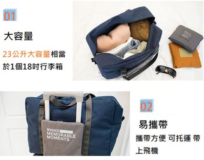 商品息特折旅行收包展後可直接套在登箱拉上,防水材,也可以背在身上,23公升大容量你怎放都行!