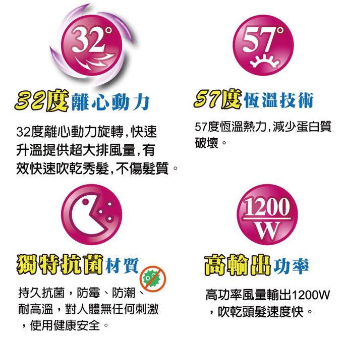 ?高功率量出1200W,吹乾速度快