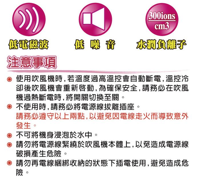 ●低磁波、口低噪音