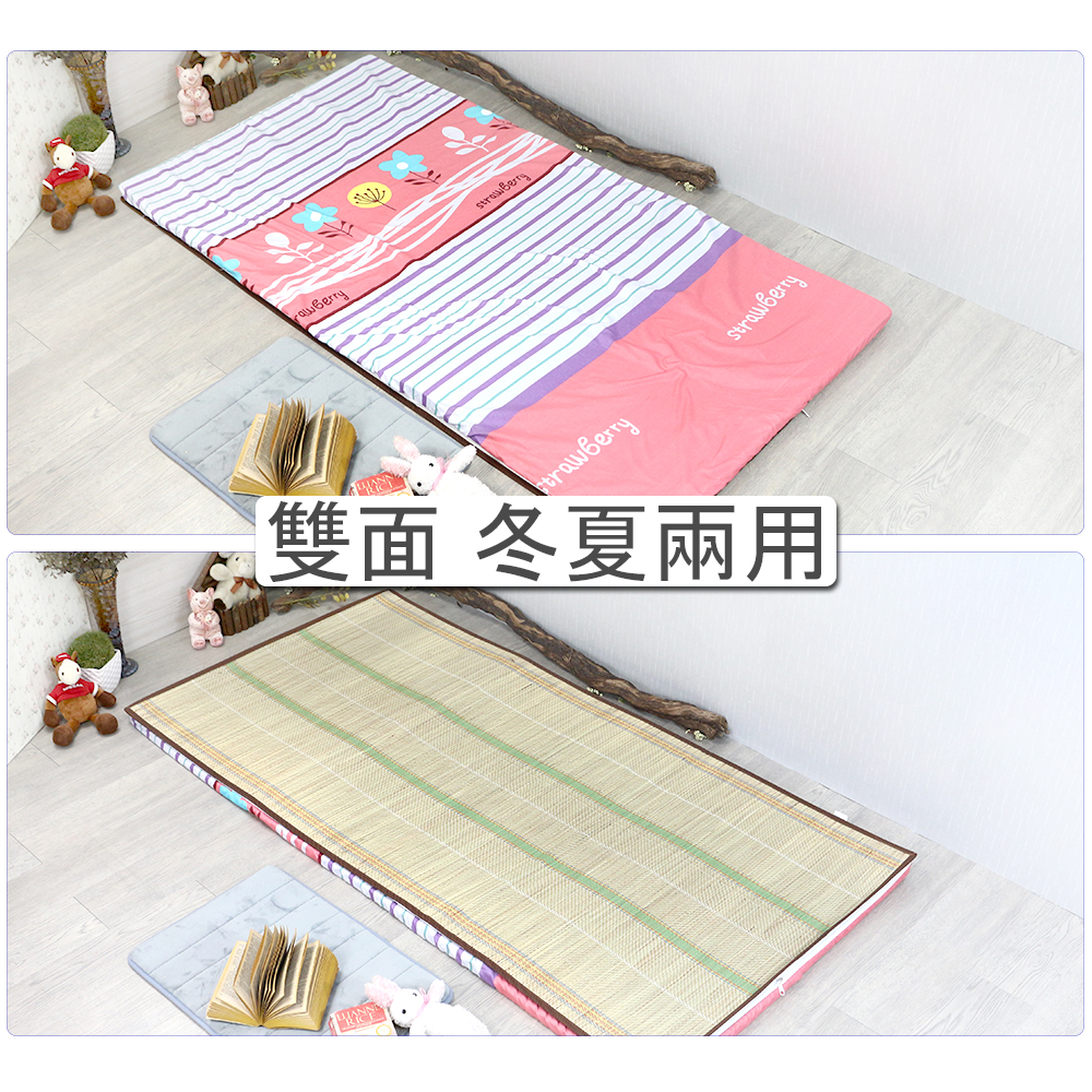 ●?面床,一面草床面,一面台印花布,冬夏日用均宜。