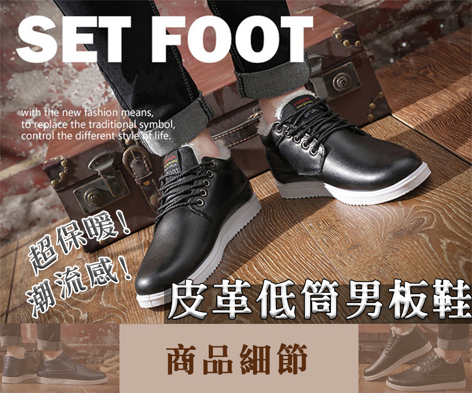 今天大家比的商品是【一送一】保暖皮革低筒男板鞋"