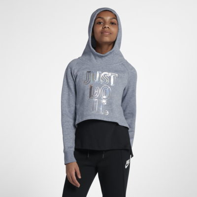 Nike Sportswear 短版連帽上衣,以虹彩顏色演繹經典標語,打造出眾風格。柔軟材質,是全日穿著的舒適選擇。