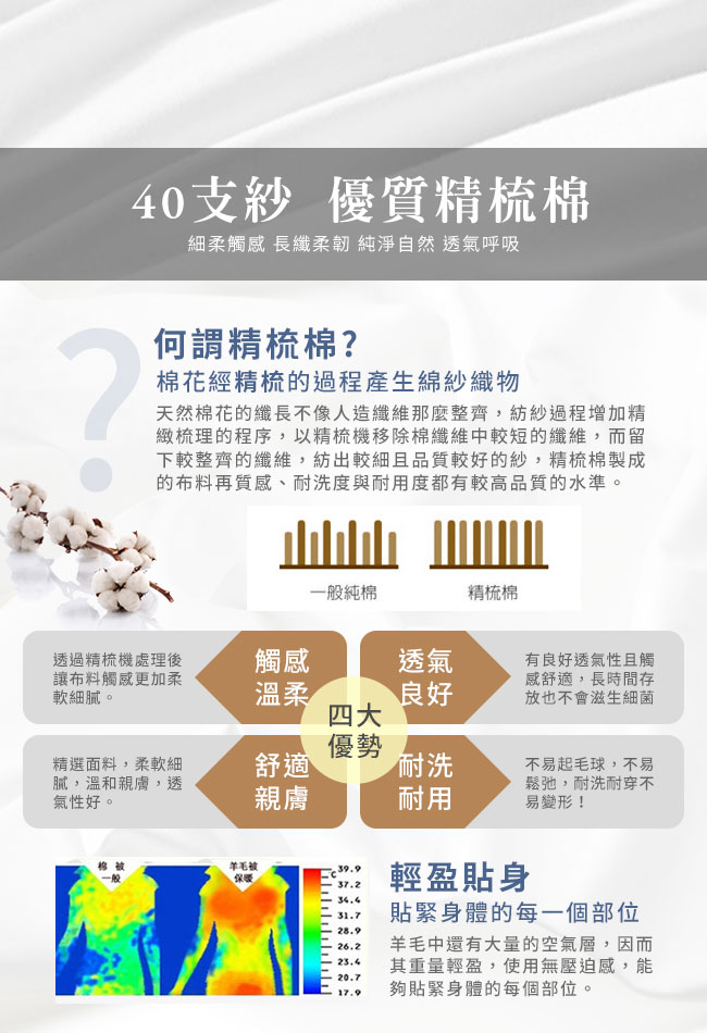 ◆40支精梳棉 柔感 ◆抗寒首立升2-3度 ◆全程台精 品有保 ◆新光外布料成