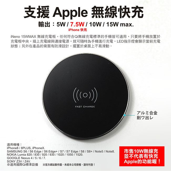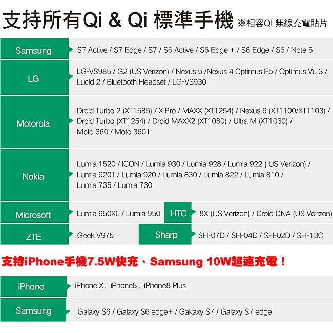 ★安全快速充,支持QC/QI★15W max.高速快充 ★悍兼容,支持主流手★智能不同充模式★超高效率