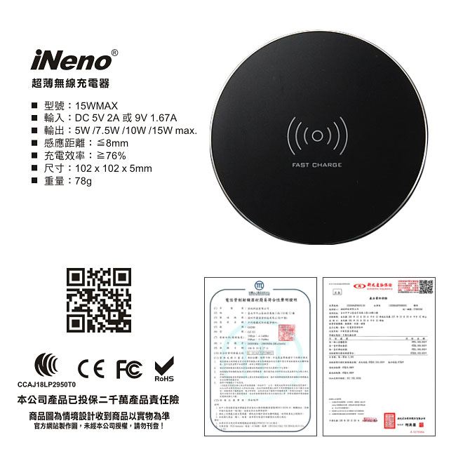 【iNeno】15W MAX 超薄型充器 ,推,箱,CP值,,,便宜,惠,介,排行,精,特,周年,,限