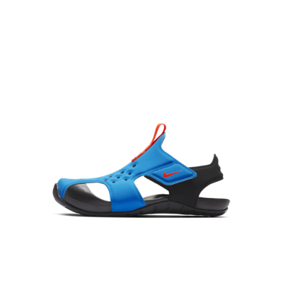 Nike Sunray Protect 2 小童涼鞋具有防水鞋面以及柔軟的泡棉避震設計,能隨幼童的小腳靈活伸縮。涼鞋採取好穿脫的雙重魔鬼氈固定帶設計,讓幼童輕易穿上固定,開心玩耍。