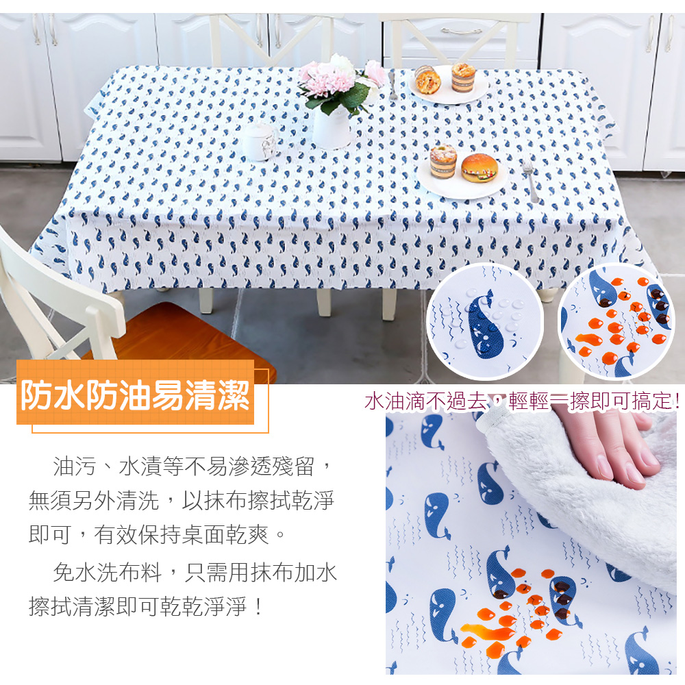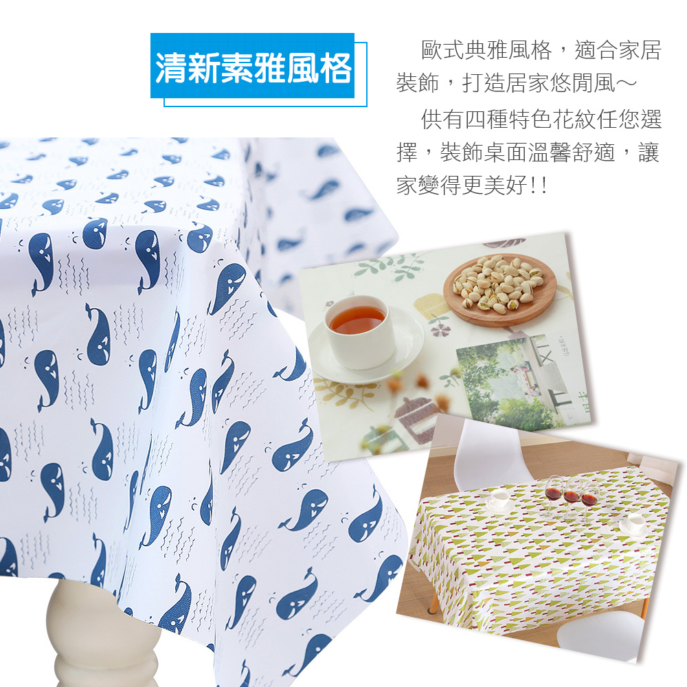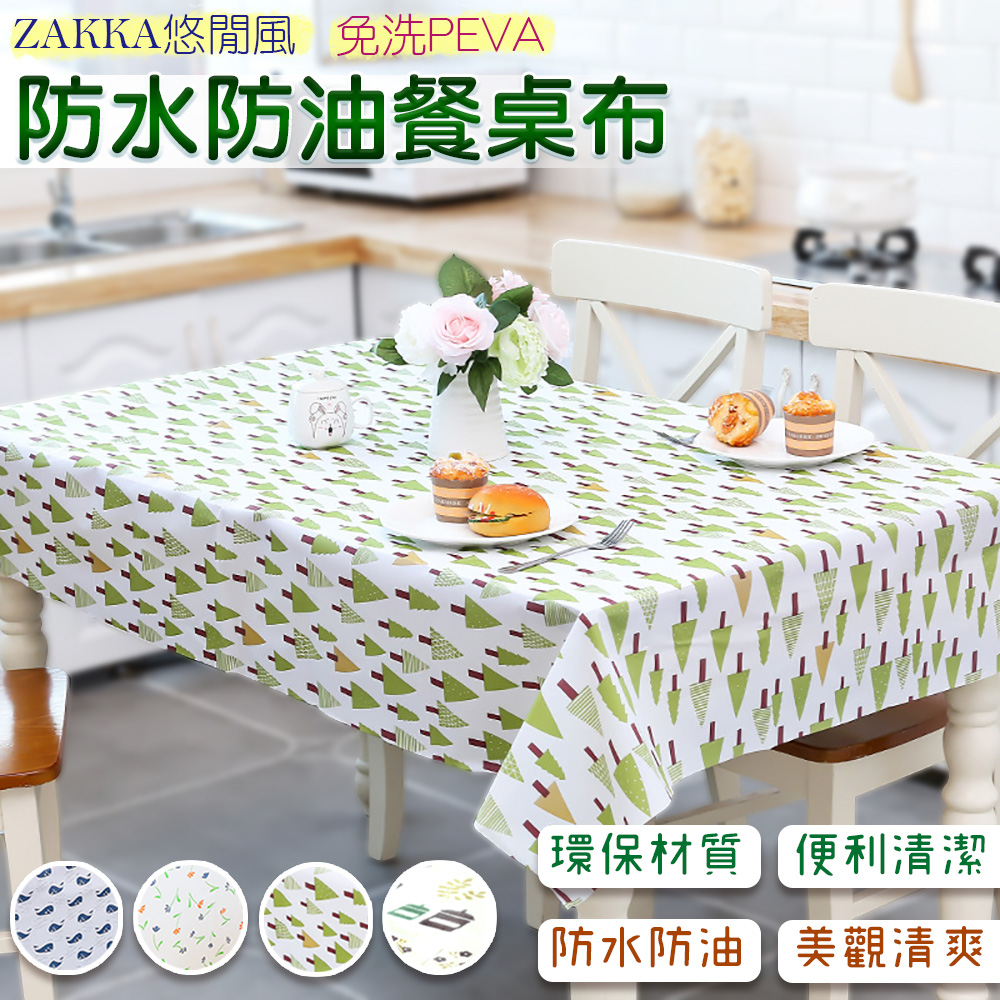 本品式典雅格,合家居,打造居家ZAKKA悠~免洗PEVA防水防油餐桌布在桌面上,具有防油、防水效果,不但本身耐用,能持桌面整,用抹布一擦,桌巾立刻乾清爽!