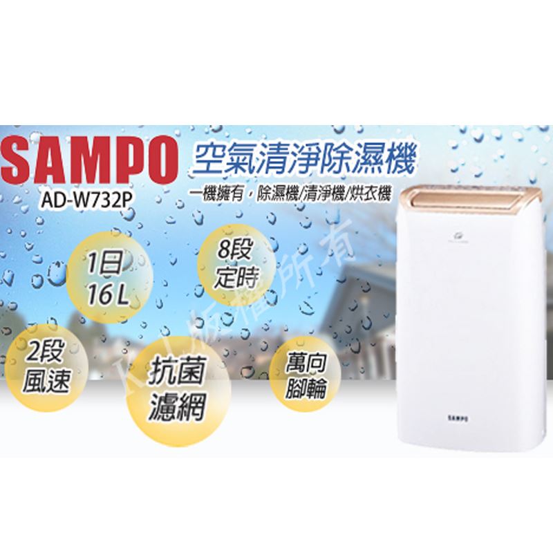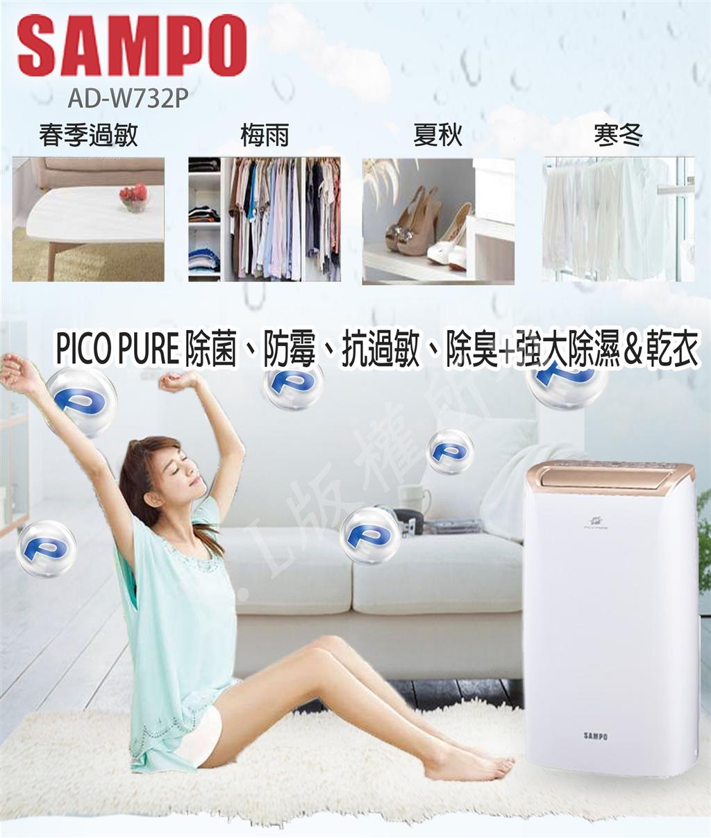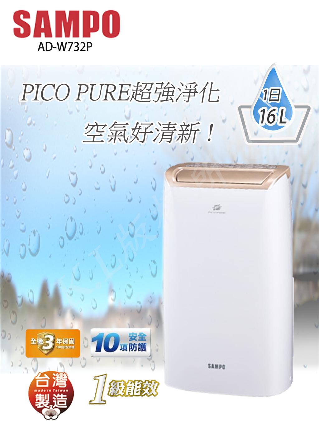 【SAMPO】16L PICOPURE空清除 AD-W732P ,推,箱,CP值,,,便宜,惠,介,排行,精,特,周年,,限