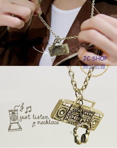 優寶購物《ubao.Tw》特貨品商城,黑貓宅配,取貨付款,JC飾品批發*低價清倉-復古銅色耳機收音機水鑽長版項鍊毛衣鏈團購禮品贈品 | Yahoo拍賣