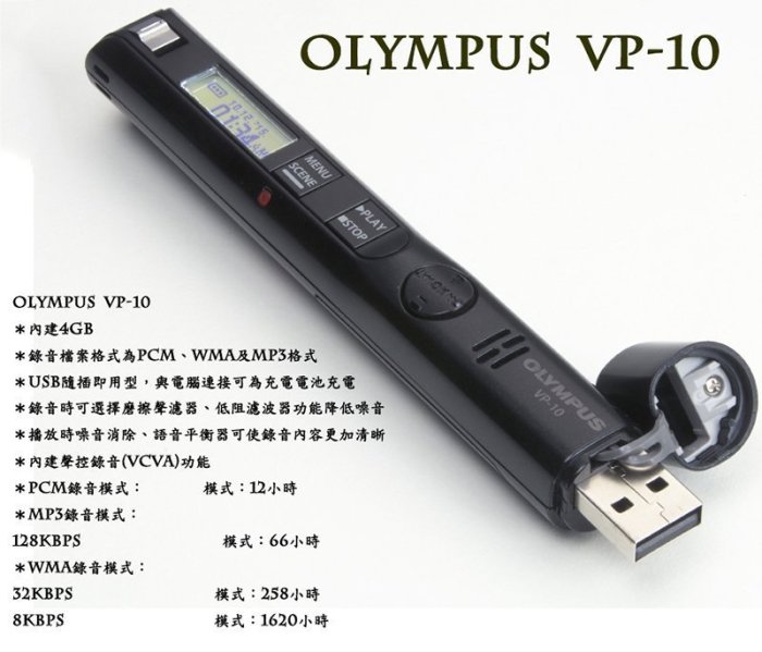 優寶購物《ubao.Tw》特貨品商城,黑貓宅配,取貨付款,視聽影訊 筆型OLYMPUS VP-10 專業數位錄音筆 公司貨保固18個月另SONY UX560F | Yahoo拍賣