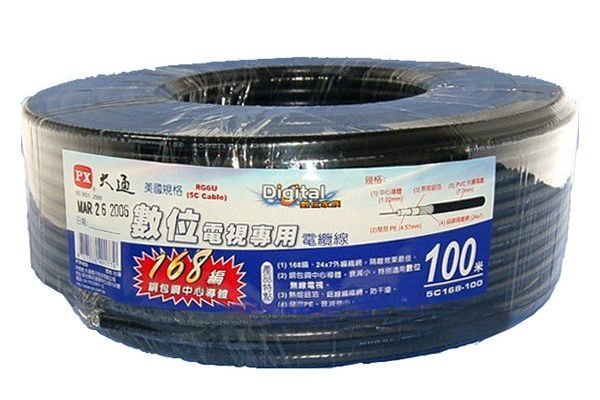 優寶購物《ubao.Tw》特貨品商城,黑貓宅配,取貨付款,【划算的店】PX大通168編織5C同軸電纜線100米 5C-100M (非128編織) /適用數位無線電視 | Yahoo拍賣