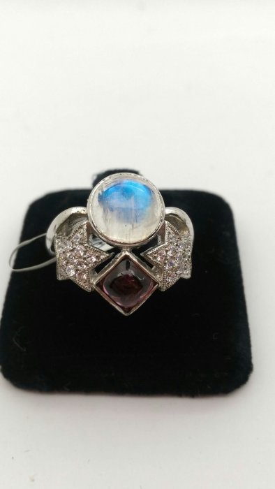 優寶購物《ubao.Tw》特貨品商城,黑貓宅配,取貨付款,*薇婷小舖* 平價精品 紅碧璽 藍韻月光石 雙寶石 天秤造型 銀白K美戒 | Yahoo拍賣