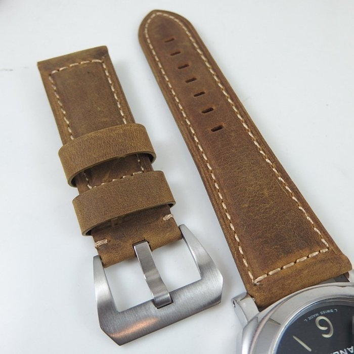 優寶購物《ubao.Tw》特貨品商城,黑貓宅配,取貨付款,錶帶屋 『6mm加厚』沛納海 Panerai 26mm 24mm 22mm 20mm淺棕色義大利頂級瘋馬磨砂牛皮皮錶帶 | Yahoo拍賣