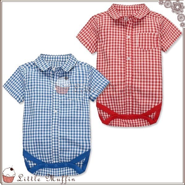 優寶購物《ubao.Tw》特貨品商城,黑貓宅配,取貨付款,包屁衣 襯衫式短袖格子連身哈衣 100%純棉 透氣舒適 紅/藍 | Yahoo拍賣