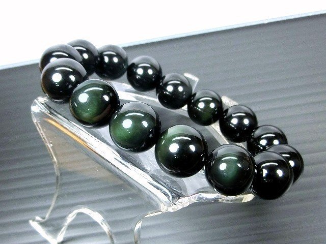 優寶購物《ubao.Tw》特貨品商城,黑貓宅配,取貨付款,[Disk水晶]孔雀綠眼黑曜石圓珠手鍊(14mm)FE-34[全綠眼] | Yahoo拍賣