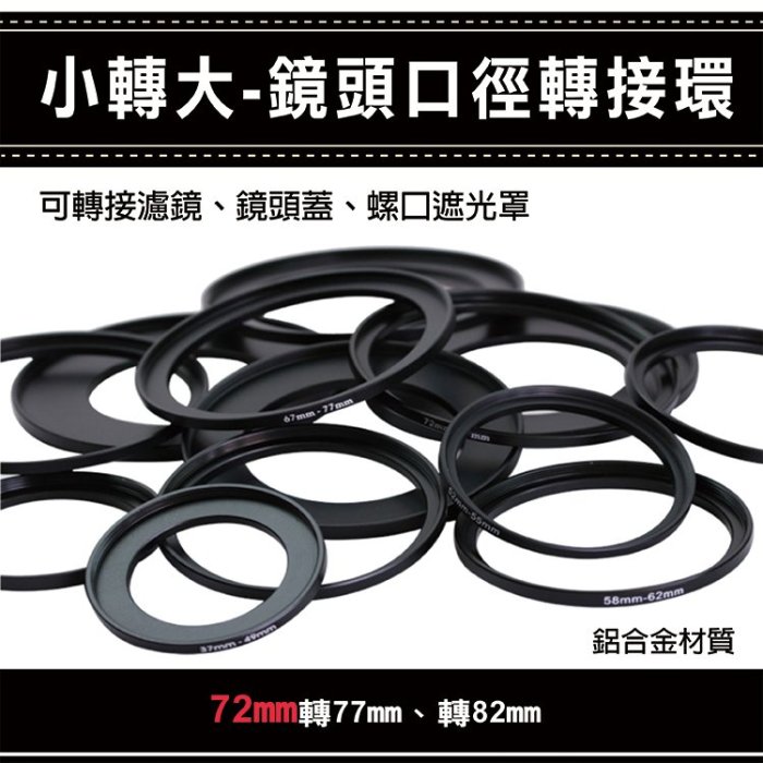 優寶購物《ubao.Tw》特貨品商城,黑貓宅配,取貨付款,全新現貨@無敵兔@通用副廠配件小轉大-鏡頭口徑轉接環 72mm 轉77 82mm 可轉接濾鏡 鏡頭蓋 螺口遮光罩 轉接環 | Yahoo拍賣