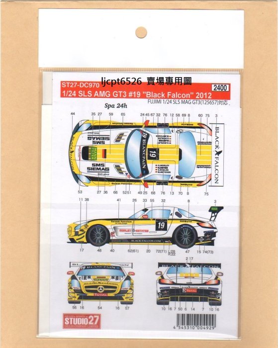 優寶購物《ubao.Tw》特貨品商城,黑貓宅配,取貨付款,【現貨】1/24 STUDIO27 SLS AMG GT3 Black Falcon 2012 ST27-DC970 | Yahoo拍賣