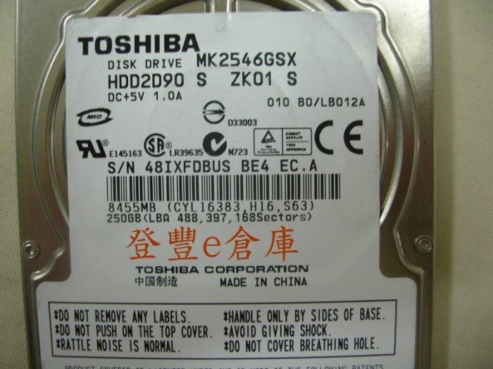 優寶購物《ubao.Tw》特貨品商城,黑貓宅配,取貨付款,【登豐e倉庫】 YF113 Toshiba MK2546GSX 250G SATA2 硬碟 | Yahoo拍賣