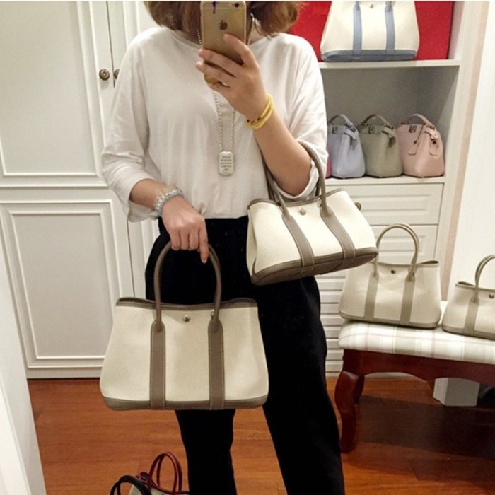 優寶購物《ubao.Tw》特貨品商城,黑貓宅配,取貨付款,H小姐愛亂買小愛同款帆布30cm真皮Garden Party花園包 | Yahoo拍賣