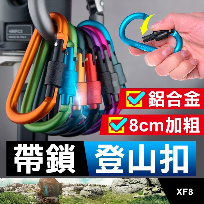 優寶購物《ubao.Tw》特貨品商城,黑貓宅配,取貨付款,板橋現貨【鋁合金登山扣】加粗8CM帶鎖D型扣掛鉤.D扣.EDC快掛扣.戰術背包扣.彈簧扣【傻瓜批發】XF8 | Yahoo拍賣