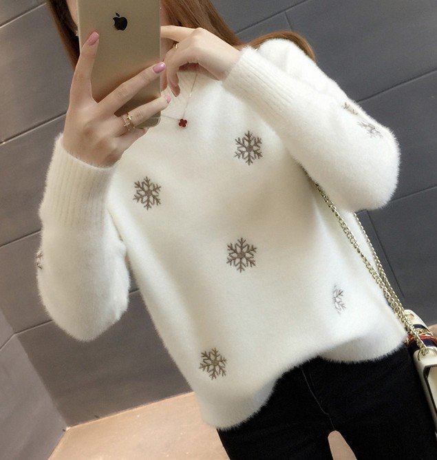 優寶購物《ubao.Tw》特貨品商城,黑貓宅配,取貨付款,【An Ju Shop】韓國範 秋冬 大碼雪花毛衣女針織衫半高領仿水貂绒毛衣打底衫上衣~OJ315008 | Yahoo拍賣