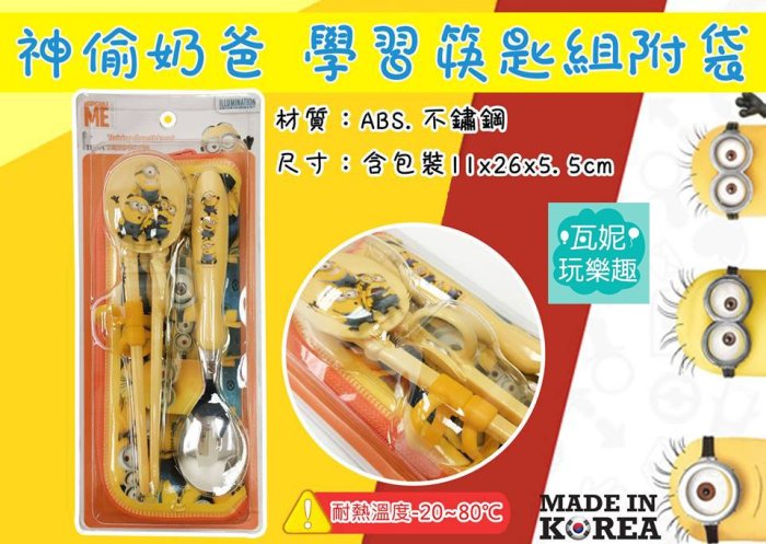 優寶購物《ubao.Tw》特貨品商城,黑貓宅配,取貨付款,♫瓦妮玩樂趣♫【現貨】韓國進口小小兵 不鏽鋼 學習筷匙組附袋 兒童餐具 學習筷子湯匙組 | Yahoo拍賣