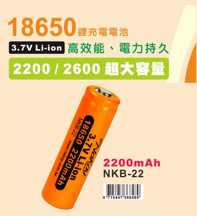 優寶購物《ubao.Tw》特貨品商城,黑貓宅配,取貨付款,含稅原廠保固NAKAY電力持久18650低自放電2200mAh鋰電池(NKB-22) | Yahoo拍賣