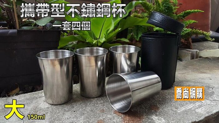 優寶購物《ubao.Tw》特貨品商城,黑貓宅配,取貨付款,【喬尚】皮套酒杯【三種容量】4入不鏽鋼杯 酒壺配角 露營小物 酒杯 茶杯 飲料杯 | Yahoo拍賣