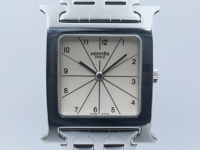 優寶購物《ubao.Tw》特貨品商城,黑貓宅配,取貨付款,【發條盒子H1062】HERMES愛馬仕 H-OUR系列 中型H款 白色數字放射面 不銹鋼石英 經典首選 | Yahoo拍賣