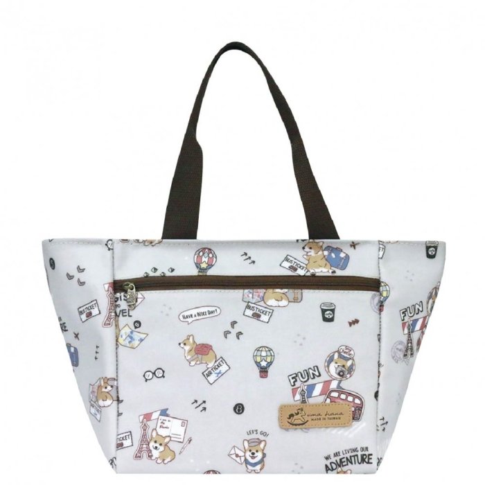 優寶購物《ubao.Tw》特貨品商城,黑貓宅配,取貨付款,uma hana 防水包 保溫便當袋 L12 灰旅行柯基 U190905 艾瑪防水布包 保溫袋 便當袋 | Yahoo拍賣