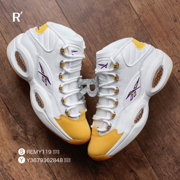 優寶購物《ubao.Tw》特貨品商城,黑貓宅配,取貨付款,R'代購 Reebok Question Mid Yellow Toe Kobe 湖人 白紫黃腳趾 FX4278 | Yahoo拍賣
