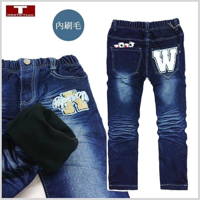 優寶購物《ubao.Tw》特貨品商城,黑貓宅配,取貨付款,《蕃茄丁》120~165CM//禦寒系列~大W毛面繡字 ‧ 暈染抓皺厚內刷毛牛仔褲//中大童 | Yahoo拍賣