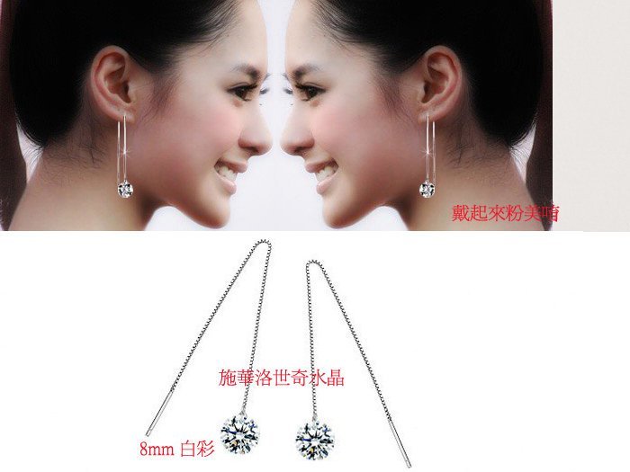 優寶購物《ubao.Tw》特貨品商城,黑貓宅配,取貨付款,*創飾紀*【925純銀耳環】 施華洛世奇元素6mm水晶細鏈式垂墜長鏈/鍊針式耳環 | Yahoo拍賣