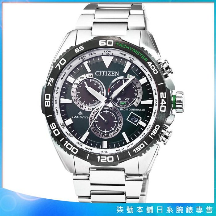 優寶購物《ubao.Tw》特貨品商城,黑貓宅配,取貨付款,【柒號本舖】CITIZEN星辰光動能藍寶石電波鬧鈴多時區鋼帶錶-綠 / CB5034-91W | Yahoo拍賣