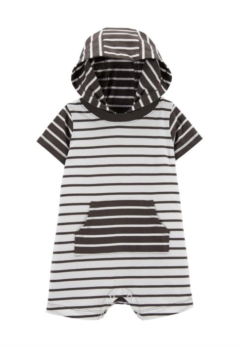 優寶購物《ubao.Tw》特貨品商城,黑貓宅配,取貨付款,《The Hans》美國 Carter’s 正貨 黑白條紋 前口袋 D918 短袖連帽包屁衣 寶寶連身衣 | Yahoo拍賣