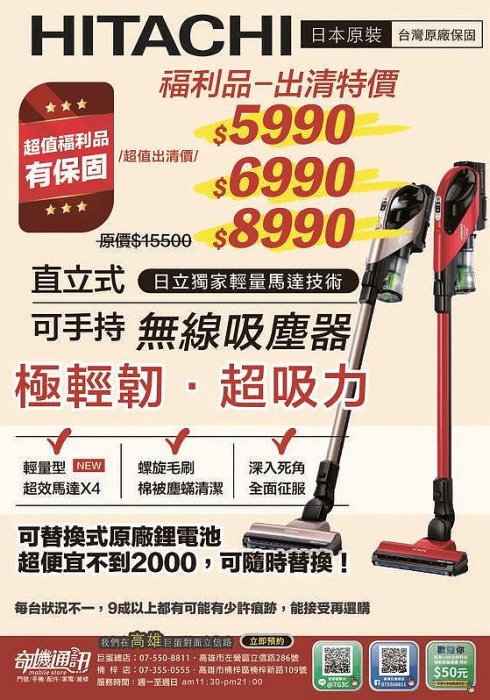 優寶購物《ubao.Tw》特貨品商城,黑貓宅配,取貨付款,奇機通訊【HITACHI日立】優惠福利品 原價需15,500 日本原裝進口 無線吸塵器 台灣公司貨 PVXFH920T | Yahoo拍賣