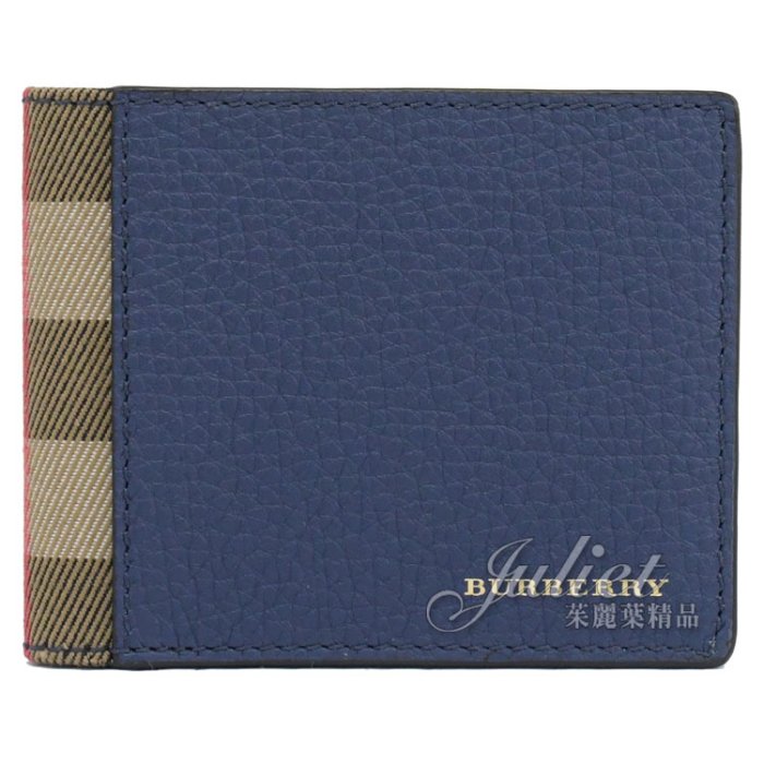 優寶購物《ubao.Tw》特貨品商城,黑貓宅配,取貨付款,【茱麗葉精品】全新精品 BURBERRY 專櫃商品 4062934 經典LOGO格紋棉麻拼接6卡短夾.寶藍 現貨 | Yahoo拍賣