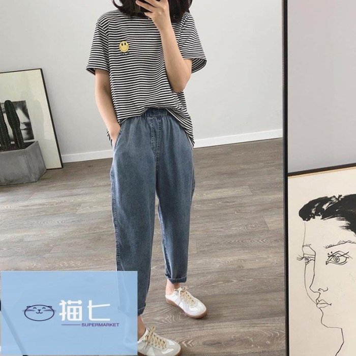 優寶購物《ubao.Tw》特貨品商城,黑貓宅配,取貨付款,【熱賣精選】天絲闊腿牛仔褲子女秋夏季薄款高腰直筒寬松休閑九分小腳哈倫褲潮褲子 | Yahoo拍賣
