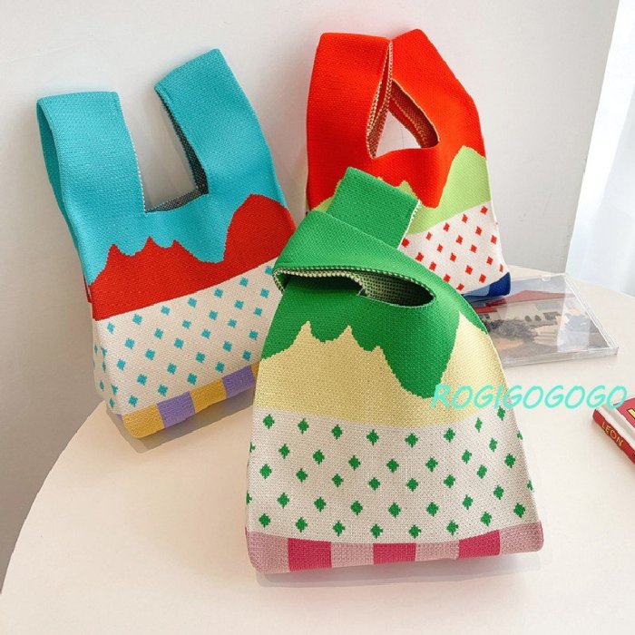 優寶購物《ubao.Tw》特貨品商城,黑貓宅配,取貨付款,ROGI 可愛冰淇淋撞色背心版方型針織手提包/購物袋/萬用包-0420預購 | Yahoo拍賣