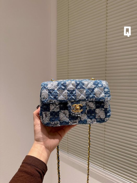 優寶購物《ubao.Tw》特貨品商城,黑貓宅配,取貨付款,現貨#Cha 香 毛呢Cf包 方塊拼接包 藍色包 鏈條包 單肩斜挎包 通勤包 女包 禮物 20cm簡約 | Yahoo拍賣