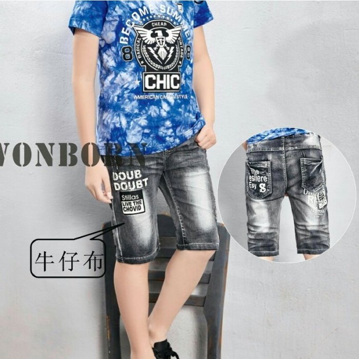 優寶購物《ubao.Tw》特貨品商城,黑貓宅配,取貨付款,《蕃茄丁》5折出清125CM//(原價$350) DOUBT印字 ‧中刷白洗色牛仔短褲//#272074//中童 | Yahoo拍賣