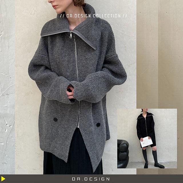 優寶購物《ubao.Tw》特貨品商城,黑貓宅配,取貨付款,►DR.DESIGN│DR33883-小眾 簡約時髦 寬鬆顯瘦 慵懶中長款 兩穿 毛衣洋裝 加厚拉鍊 開襟外套 黑/灰 | Yahoo拍賣