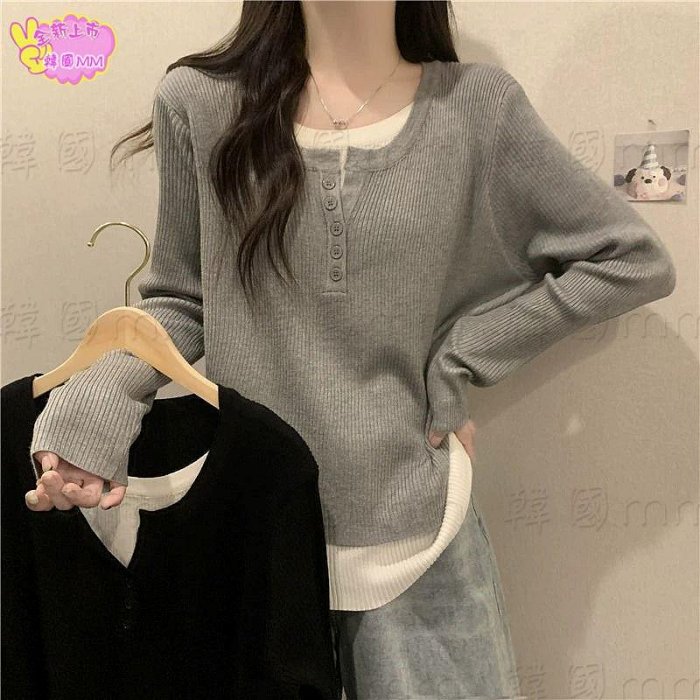 優寶購物《ubao.Tw》特貨品商城,黑貓宅配,取貨付款,韓國MM=大碼女裝假兩件長袖T恤女春秋季設計感小眾胖mm寬松顯瘦百搭上衣=上衣/短t/打底衫/一字領t/雪紡/襯衫/ | Yahoo拍賣
