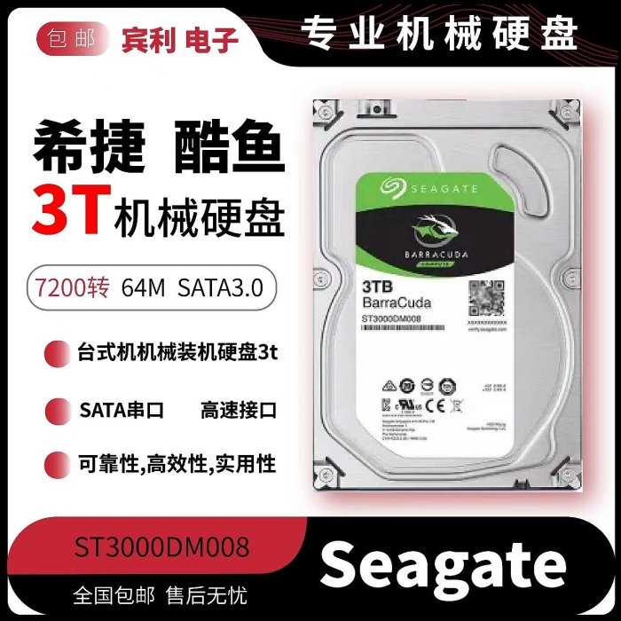 優寶購物《ubao.Tw》特貨品商城,黑貓宅配,取貨付款,Seagate/希捷 ST3000DM008 3t硬碟3tb桌機機硬碟sata3 3t新酷魚 | Yahoo拍賣
