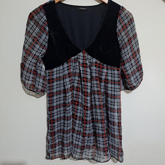 優寶購物《ubao.Tw》特貨品商城,黑貓宅配,取貨付款,絨質拼接格紋短袖雪紡上衣 全長內裡(賣場滿99出貨) | Yahoo拍賣