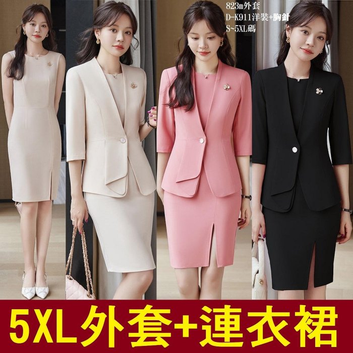 優寶購物《ubao.Tw》特貨品商城,黑貓宅配,取貨付款,5XL加大碼【預購6-10天】修身免燙中袖套裝【823m外套/D-K911無袖洋裝】 | Yahoo拍賣