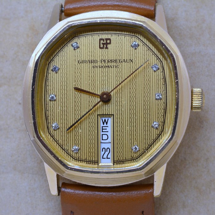 優寶購物《ubao.Tw》特貨品商城,黑貓宅配,取貨付款,《寶萊精品》GP 芝柏金黃多角圓型星期自動男子錶 | Yahoo拍賣