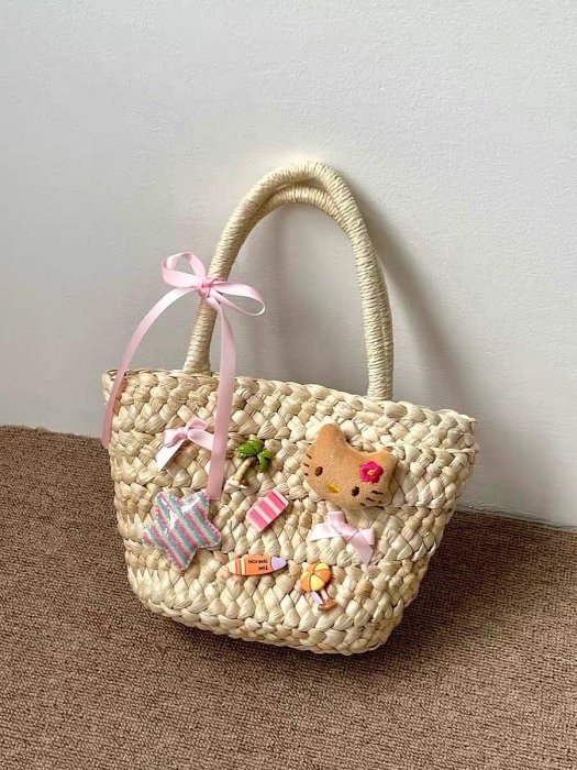 優寶購物《ubao.Tw》特貨品商城,黑貓宅配,取貨付款,現貨 編織包 夏季新款高顏值kitty草編包包女輕便手提包可愛掛飾蝴蝶結編織包 | Yahoo拍賣