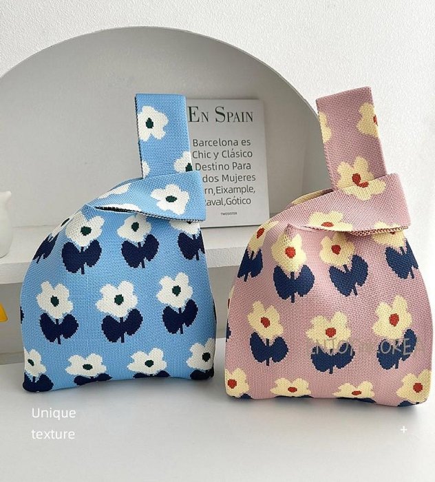 優寶購物《ubao.Tw》特貨品商城,黑貓宅配,取貨付款,ENJOY韓國🇰🇷 新款日系甜美百花朵朵開挺料雙面針織手提包/萬用包/收納包-預購 | Yahoo拍賣